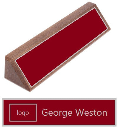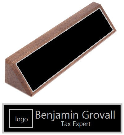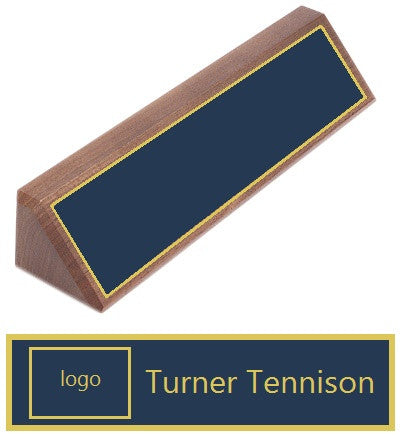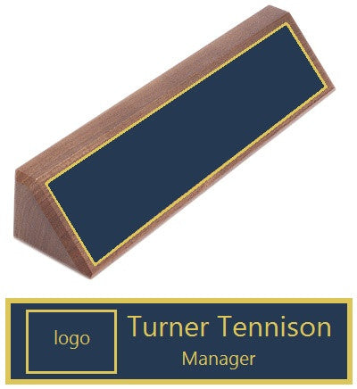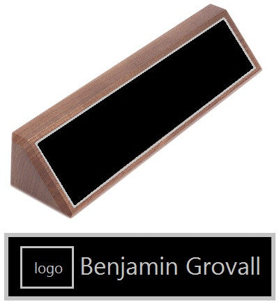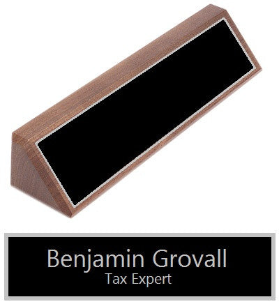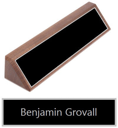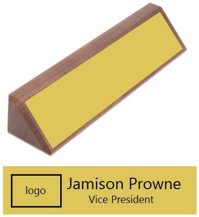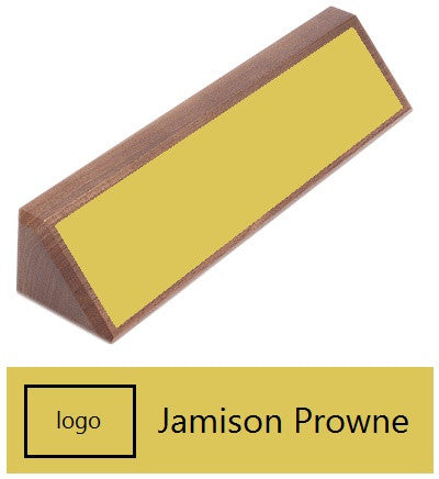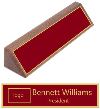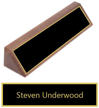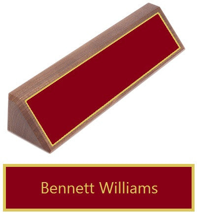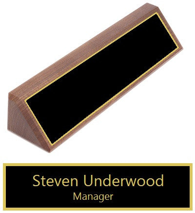 Desk Name Plate Made With Genuine Walnut Wood. Choose from a variety of engraving plate colors and design your own today. Purchase includes (character limited) complimentary engraving.